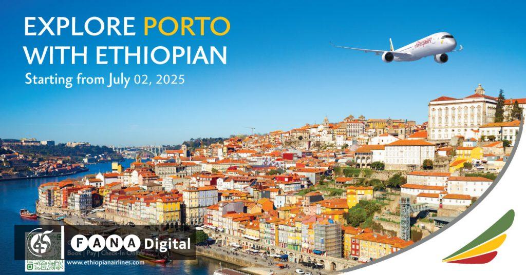 አዲስ አበባ፣ የካቲት 21፣ 2017 (ኤፍ ኤም ሲ) የኢትዮጵያ አየር መንገድ ወደ ፖርቱጋል ፖርቶ ከተማ በሳምንት አራት ቀን የበረራ አገልግሎት መስጠት ሊጀምር መሆኑን አስታወቀ።