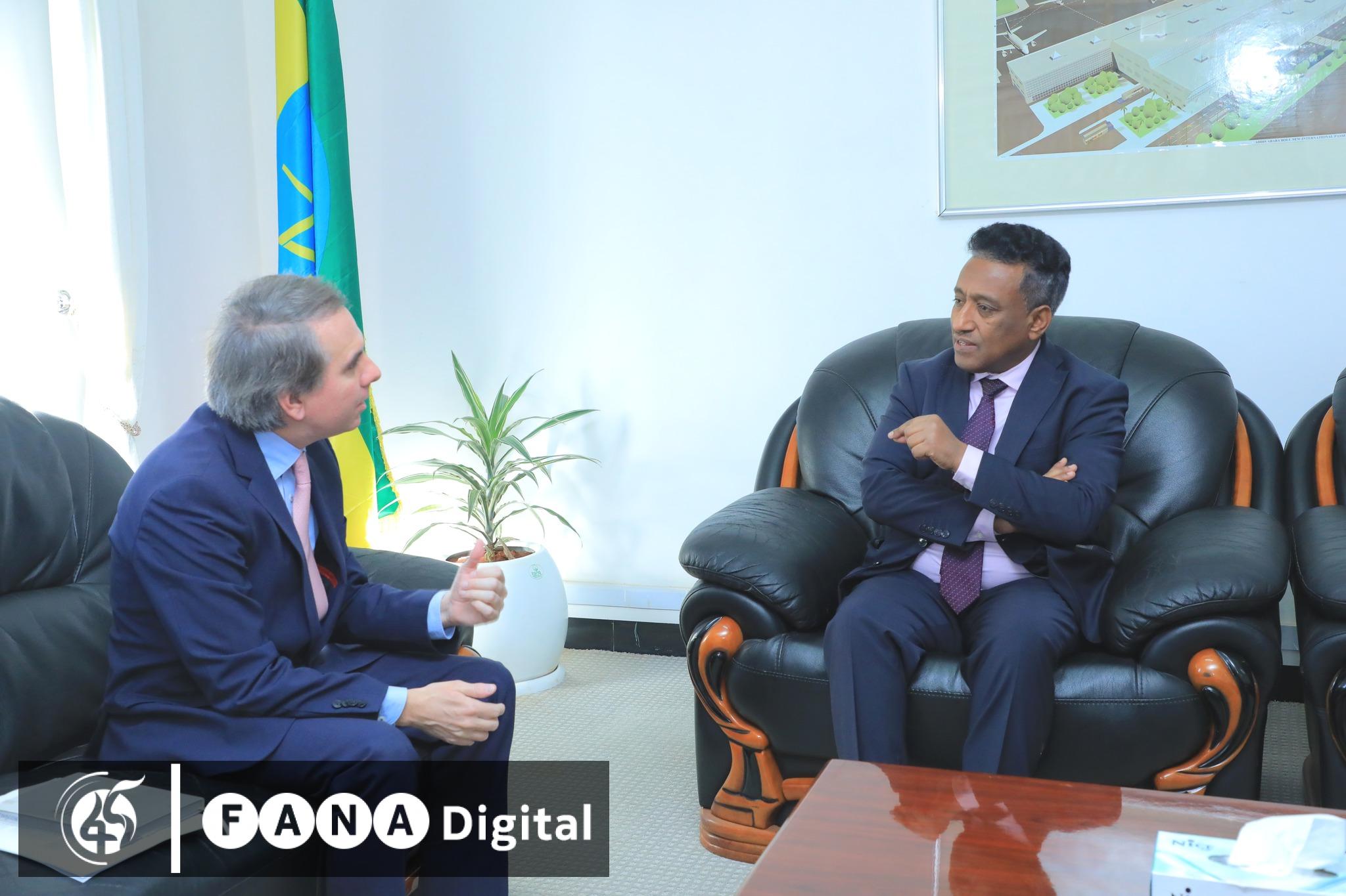 በውይይታቸውም ከአንድ ወር በፊት በአርጀንቲና ቦነስአይረስ በአጭር ፊርማ ደረጃ የተጠናቀቀውን የአየር አገልግሎት ስምምነት በሙሉ ፊርማ ደረጃ የሚጠናቀቅበት ሂደት እንዲፋጠን ከመግባባት ደርሰዋል፡፡
