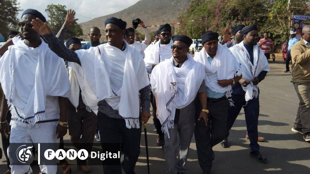 አዲስ አበባ፣ የካቲት 29፣ 2017 (ኤፍ ኤም ሲ) የማርሳቤት ክልል አሥተዳዳሪ መህሙድ አሊና የኬንያ ልዑካን ቡድን አባላት በ72ኛው የቦረና ገዳ ባሊ ስልጣን ርክክብ ሥነ-ሥርዓት ላይ ለመታደም ያበሎ ከተማ ገብተዋል፡፡
