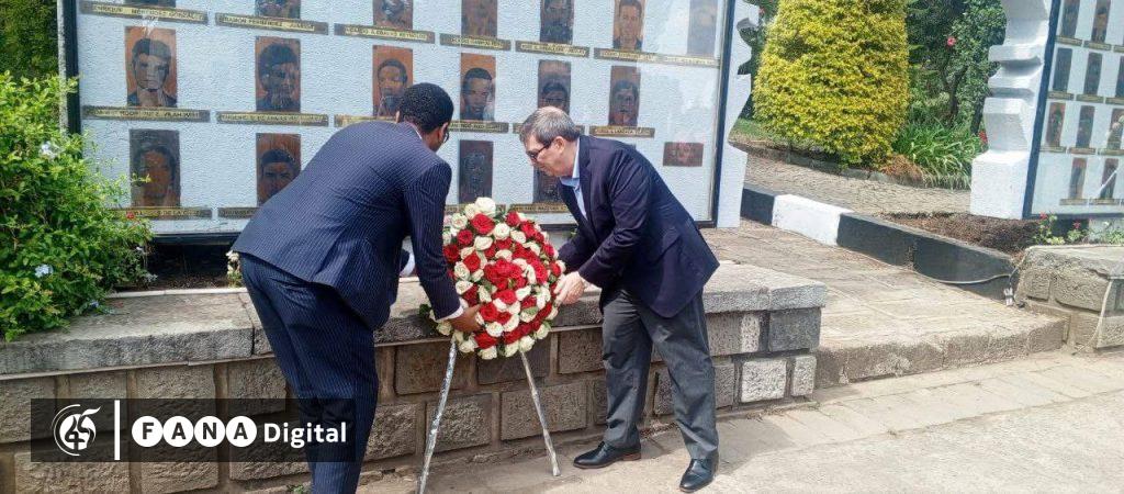 አዲስ አበባ፣ መጋቢት 3፣ 2017 (ኤፍ ኤም ሲ) የኩባ ውጭ ጉዳይ ሚኒስትር ብሩኖ ኤድዋርዶ ሮድሪጌዝ ፓሪላ በኢትዮ- ኩባ ወዳጅነት ፓርክ የአበባ ጉንጉን አኑረዋል።
