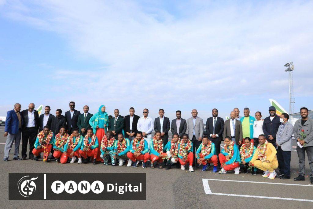 የልዑካን ቡድኑ አባላት ቦሌ ዓለም አቀፍ አውሮፕላን ማረፊያ ሲደርሱ የጀግና አቀባበል የተደረገላቸው መሆኑን የኢትዮጵያ አትሌቲክስ ፌዴሬሽኑ መረጃ አመላክቷል።