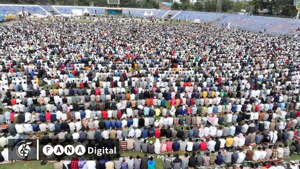 1 ሺህ 446ኛው የዒድ አል ፈጥር በዓል የሶላት ሥነ-ሥርዓት በርካታ የእምነቱ ተከታዮች በተገኙበት በአዲስ አበባ ስታዲየም ተካሂዷል።