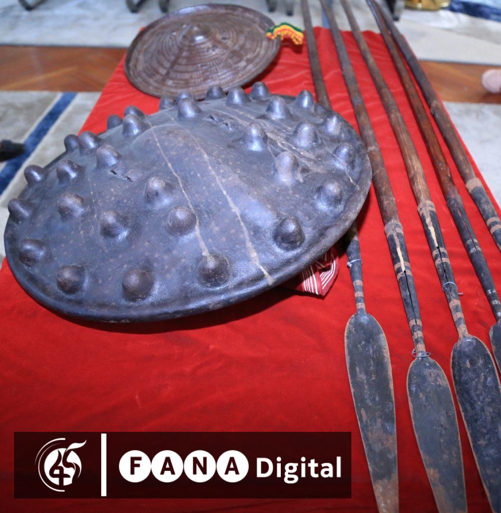 አዲስ አበባ፣ መጋቢት 26፣ 2017 (ኤፍ ኤም ሲ) የሌተናል ጄኔራል ጃገማ ኬሎ ሁለት ጋሻዎችና አምስት ጦሮች ለኢትዮጵያ ቅርስ ባለስልጣን ተበረከቱ፡፡