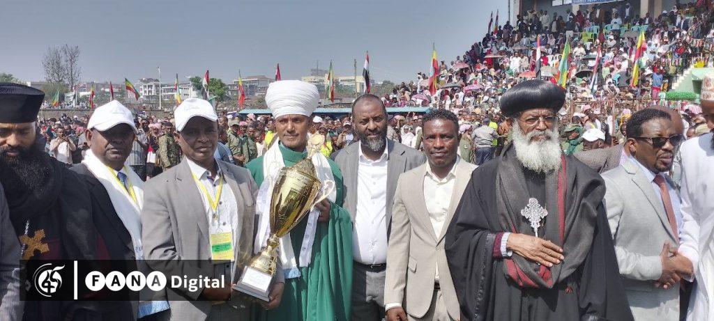 የአዘጋጅነት ዋንጫውን የአማራ ክልል ተወካዮች ከሰላም ሚኒስቴር ዲኤታው ኸይረዲን ተዘራ(ዶ/ር) ተረክበዋል።