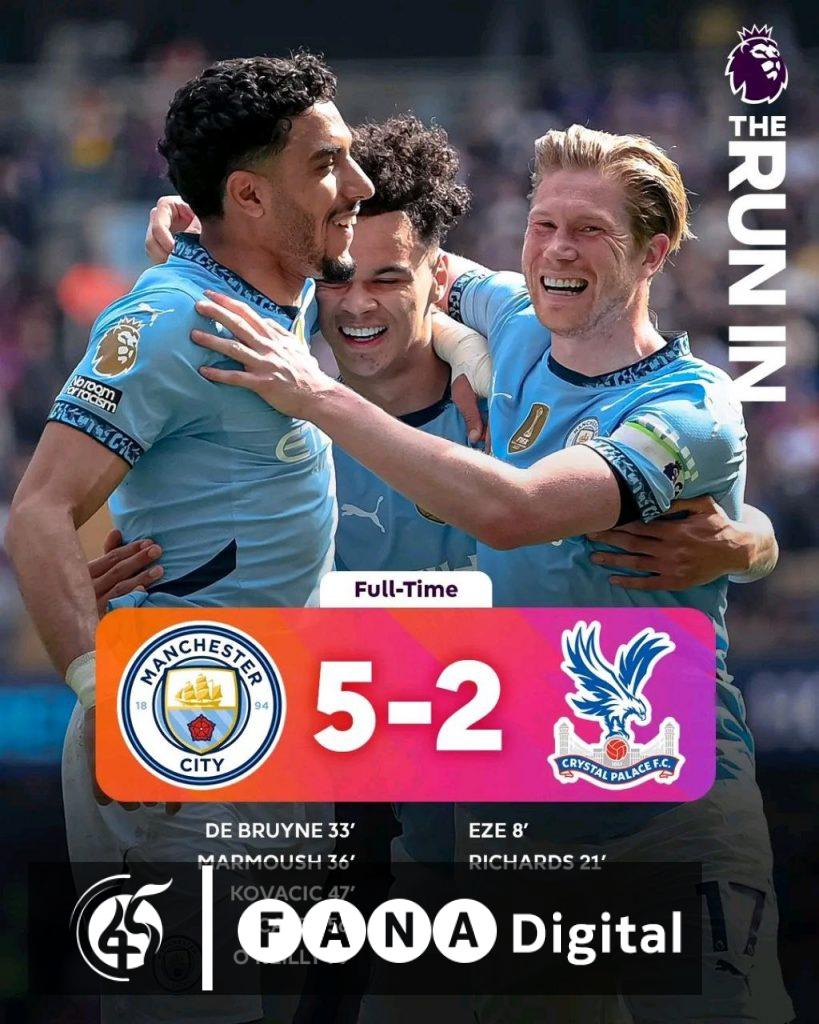 አዲስ አበባ፣ ሚያዝያ 4፣ 2017 (ኤፍ ኤም ሲ) በእንግሊዝ ፕሪሚየርሊግ 32ኛ ሳምንት ጨዋታ ማንቼስተር ሲቲ ከመመራት ተነስቶ ክሪስታል ፓላስን 5 ለ 2 አሸንፏል፡፡