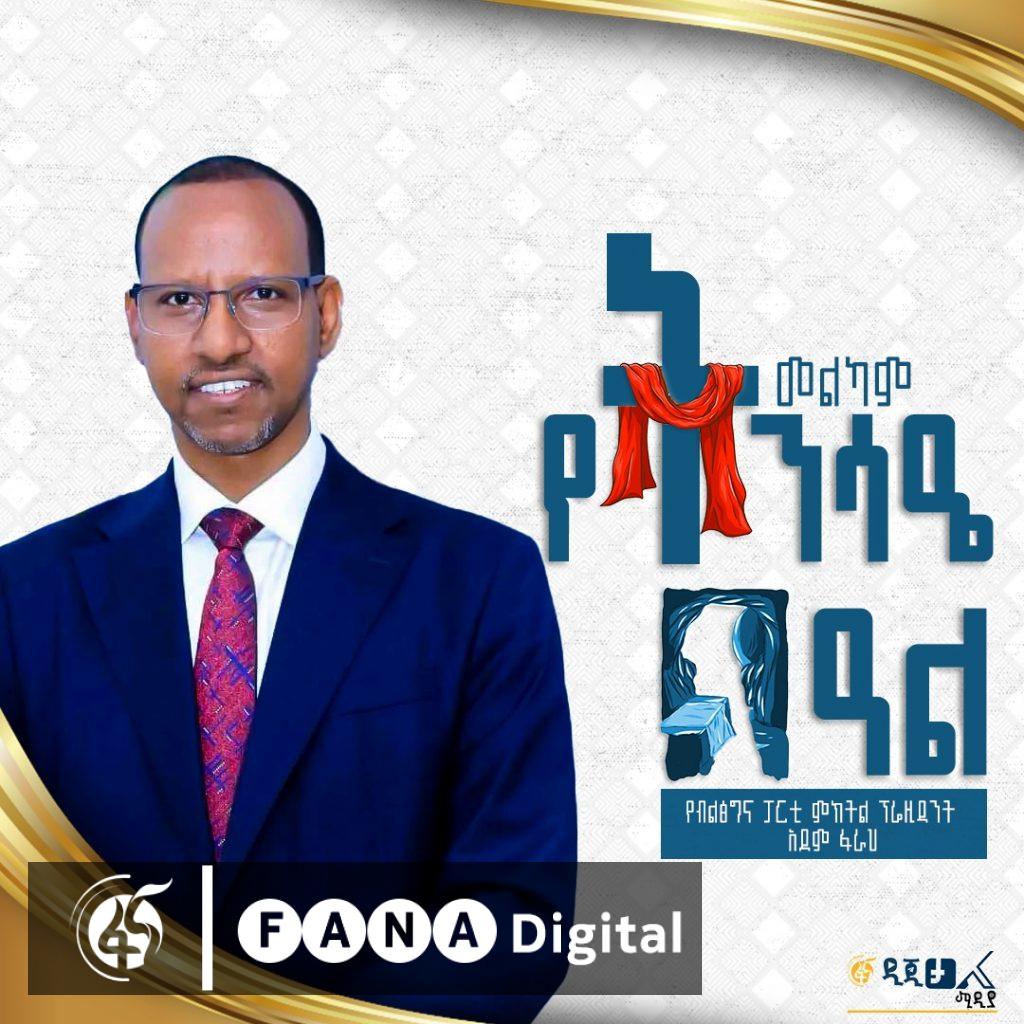 አቶ አደም ፋራህ የትንሳዔ በዓልን አስመልክቶ ባስተላለፉት የመልካም ምኞት መግለጫ መልዕክት፤ ለመላው የክርስትና እምነት ተከታዮች በሙሉ እንኳን ለትንሳዔ በዓል በሰላም አደረሳችሁ ብለዋል።