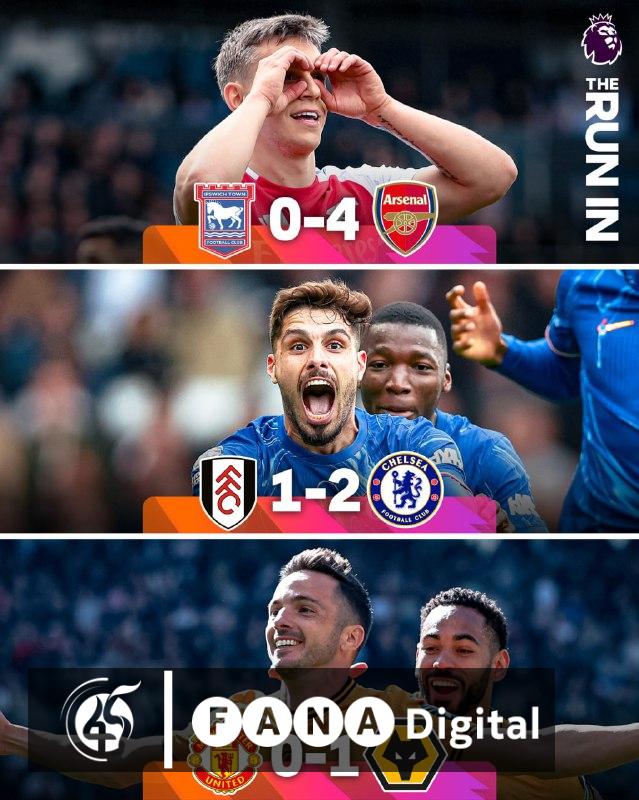 አዲስ አበባ፣ ሚያዝያ 12፣ 2017 (ኤፍ ኤም ሲ) በእንግሊዝ ፕሪሚየር ሊግ 33ኛ ሳምንት መርሐ ግብር አርሰናል ከሜዳው ውጪ ኢፕስዊች ታውንን ሲያሸንፍ ማንቼስተር ዩናይትድ ሽንፈት አስተናግዷል፡፡