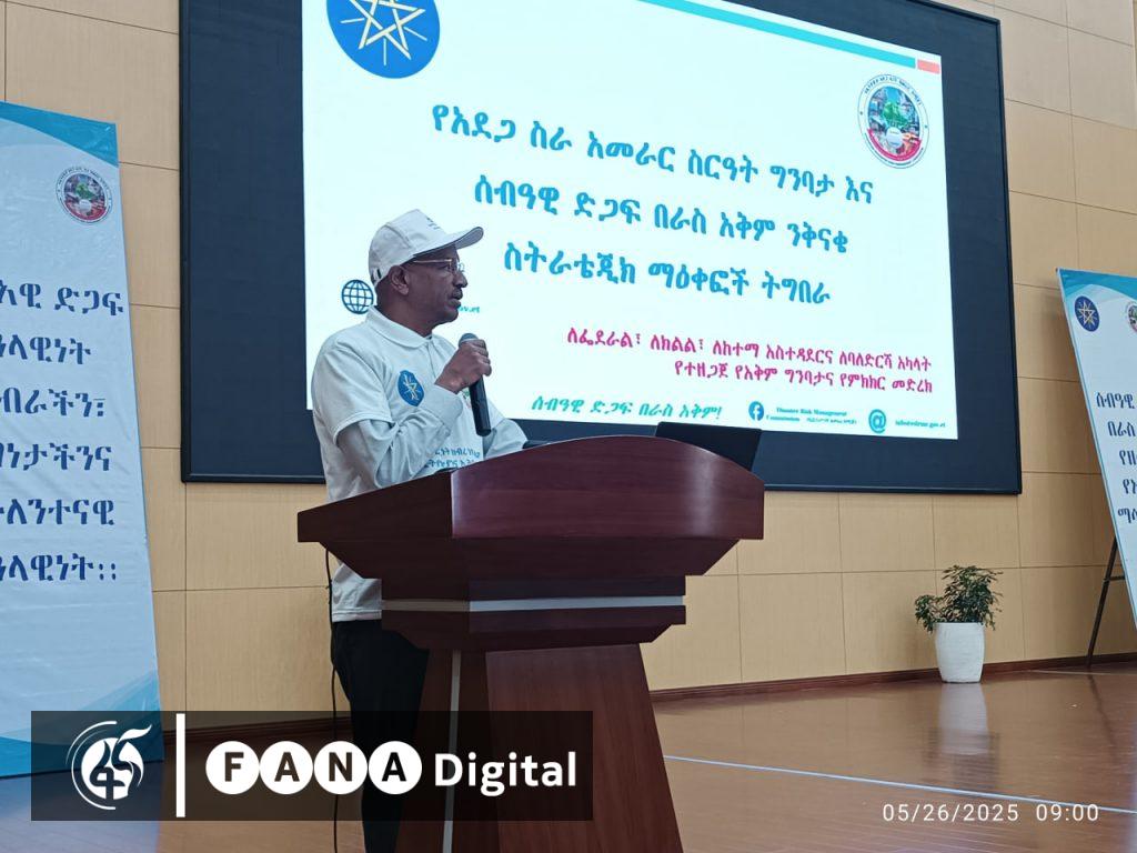 የአደጋ ስጋት ስራ አመራር ሥርዓት ግንባታ እና የሰብዓዊ ድጋፍ በራስ አቅም ንቅናቄ ስትራቴጂክ ማዕቀፎች ትግበራ ለፌዴራል፣ ክልል፣ ከተማ አስተዳደርና ባለድርሻ አካላት የተዘጋጀ የአቅም ግንባታ መድረክ መካሄድ ጀምሯል።