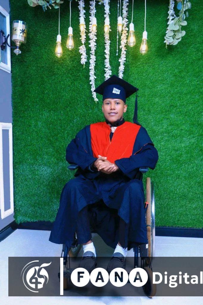 ያጋጠመው የአካል ጉዳት ተስፋ አስቆርጦት ለስኬቱ እንቅፋት እንዲሆን ያልፈቀደው ወጣቱ÷ ይበልጥ ብርታት አጎናጽፎት ሁለተኛ ዲግሪውን ጀምሯል፡፡