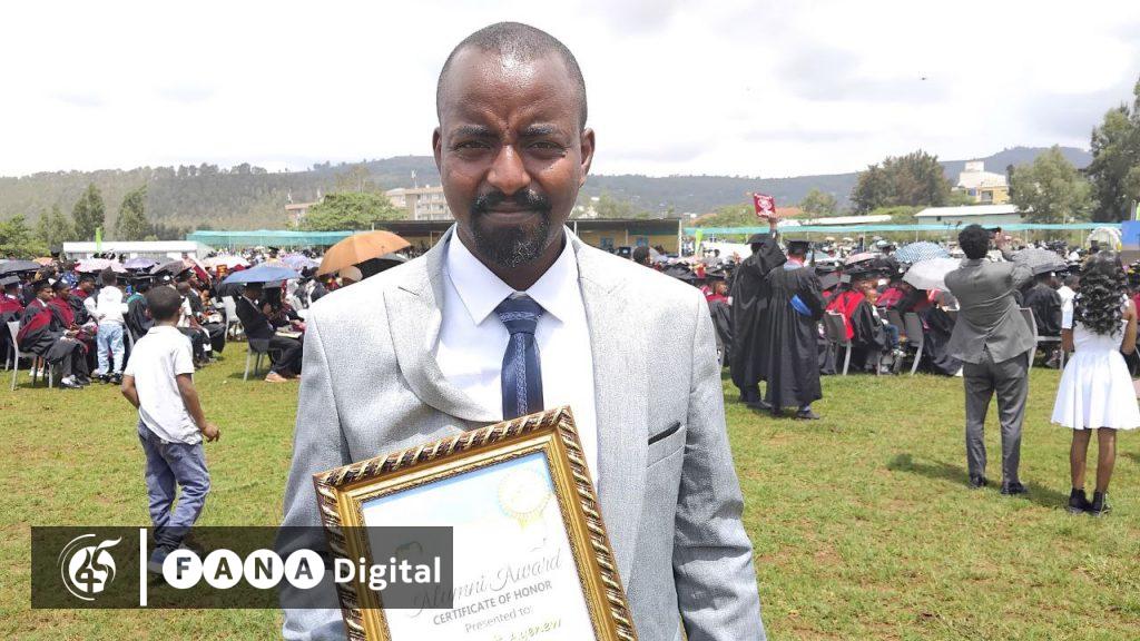 የጎንደር ዩኒቨርሲቲም ዛሬ ባካሄደው የተማሪዎች ምርቃት ሥነ ሥርዓት ላይ በ13 ዘርፎች ስኬታማ ስራ ለሰሩ እውቅና ሲሰጥ የበጎ ፈቃድ አገልግሎት መስጠት መንፈሱን ለሚያስደስተው ወጣት ዳዊት ልዩ የሰብዓዊ አገልግሎት ዘርፍ ዕውቅና ሰጥቶታል።