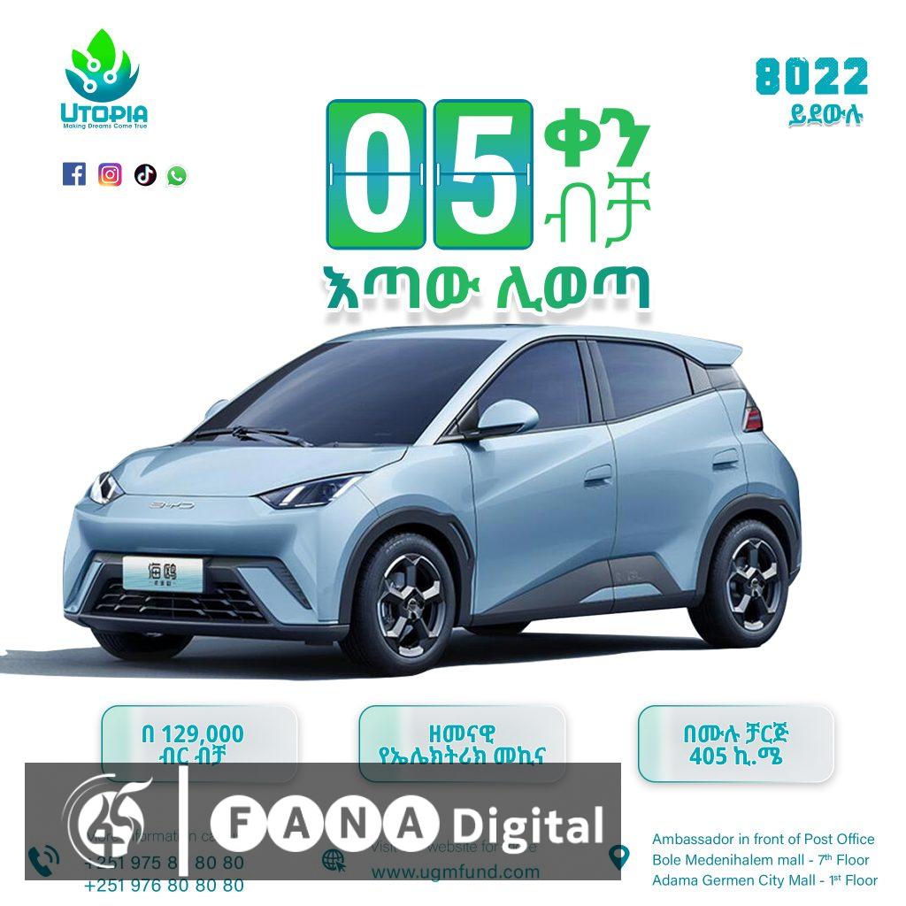 በዘርፉ ፈር ቀዳጅ የሆነው ድርጅታችን ዩቶፒያ ቴክኖሎጂ ሃላ/የተ/የግ/ማ “የዮቶፕያ ግሪን ሞቢሊቲ ፕሮጀክት” (Utopia Green Mobility) አካል የሆነው እና በኢትዮጵያ የመጀመሪያ የሆነውን የመኪና ፍይናንሲንግ ሲስተም “ዮቶፕያ ግሪን ፈንድ” (www.ugmfund.com) በመጠቀም በመኪና ሊዝ ፍይናንሲንግ በዝቅተኛ ቅድመ ክፍያ (900,000 ብር ጀምሮ ) በርካታ ደንበኞችን ዘመናዊ የኤሌክትሪክ መኪና ባለቤት ማድረጉን ቀጥሏል፡፡