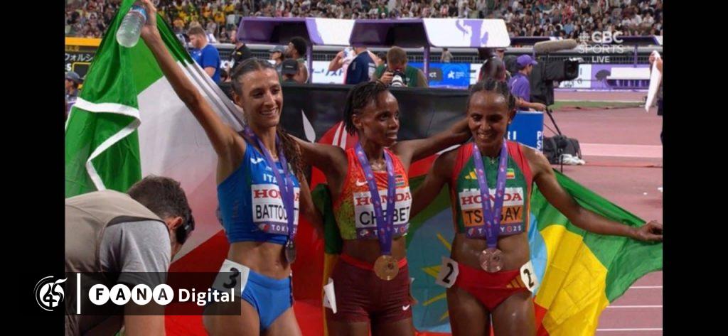 አዲስ አበባ፣ መስከረም 3፣ 2018 (ኤፍ ኤም ሲ) በ20ኛው የዓለም አትሌቲክስ ሻምፒዮና በ10 ሺህ ሜትር ሴቶች ውድድር ኢትዮጵያ የነሀስ ሜዳሊያ አግኝታለች።