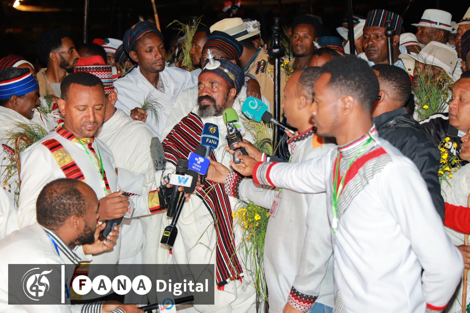 አባገዳዎችና ሃደሲንቄዎች በእጃቸው እርጥብ ሳር በመያዝ ከጨለማ ወደ ብርሃን መሸጋገርን በማብሰር መልካም ምኞታቸውን ገልጸዋል፡፡