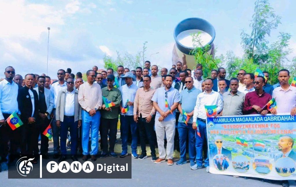 አዲስ አበባ፣ ጥቅምት 2፣ 2018 (ኤፍ ኤም ሲ) በሶማሌ ክልል በቅርቡ የተመረቁና የተጀመሩ ግዙፍ ሀገራዊ ፕሮጀክቶችን አስመልክቶ በክልሉ የተለያዩ አካባቢዎች የድጋፍ ሰልፍ ተካሂዷል።
