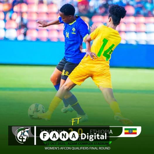 አዲስ አበባ፣ ጥቅምት 12፣ 2018 (ኤፍ ኤም ሲ) የሴቶች አፍሪካ ዋንጫ ማጣሪያ የመጨረሻ ዙር የመጀመሪያ ጨዋታ የኢትዮጵያ ሴቶች ብሔራዊ ቡድን በታንዛኒያ አቻቸው 2 ለ 0 ተሸንፏል፡፡