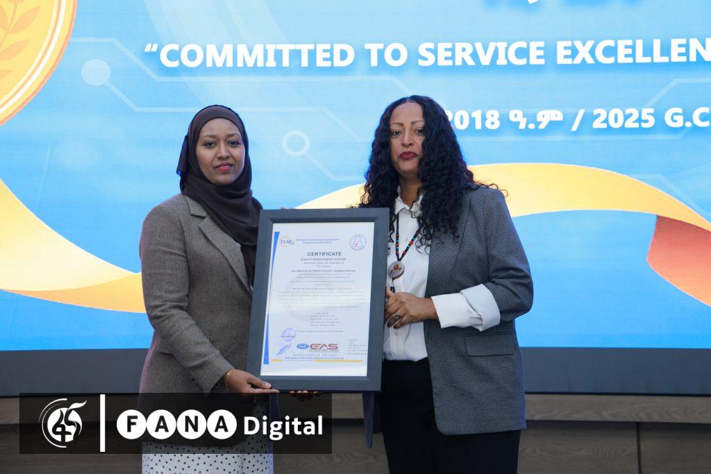 የተቋሙ ዋና ዳይሬክተር ወ/ሮ ትዕግስት ሃሚድ የጥራት ሥራ አመራር ስርዓት ማረጋገጫ የምስክር ወረቀቱን በይፋ ተረክበዋል፡፡