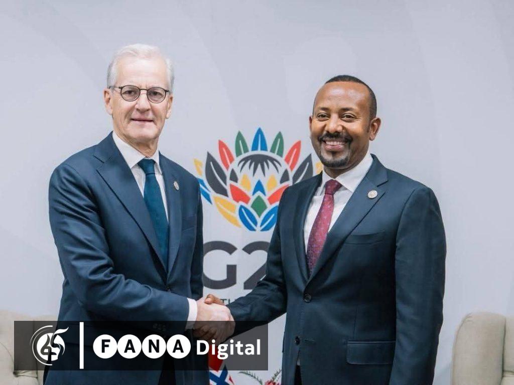 ጠቅላይ ሚኒስትሩ በማህበራዊ ትስስር ገጻቸው ባሰፈሩት ጽሑፍ ÷ ከኖርዌይ ጠቅላይ ሚኒስትር ጋር በአየር ንብረት ጥበቃ ሥራ ትብብር እና የጋራ ትኩረት በሚሹ የባለብዙወገን ጉዳዮች ላይ መክረናል ብለዋል፡፡