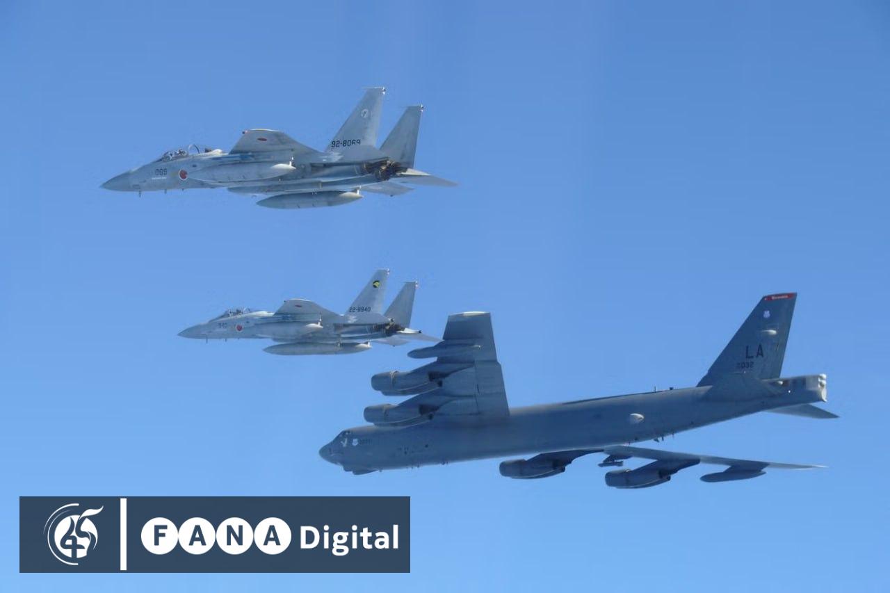 ሁለት የዩኤስ ቢ-52 ስትራቴጂካዊ ቦምብ ጣይ አውሮፕላኖች ከሦስት የጃፓን ኤፍ-35 ስውር ተዋጊዎች እና ሶስት ኤፍ-15 የአየር ጄቶች ጋር ሲበሩ መታየታቸው ተመላክቷል፡፡