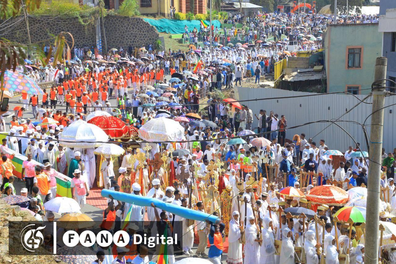 በርካታ ምዕመናን እና የውጭ ሀገራት ጎብኚዎችን ጨምሮ የበዓሉ ታዳሚዎችም ታቦታትን አጅበው በመጓዝ ላይ ናቸው።
