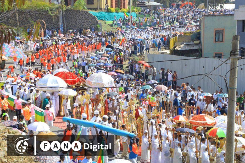 በርካታ ምዕመናን እና የውጭ ሀገራት ጎብኚዎችን ጨምሮ የበዓሉ ታዳሚዎችም ታቦታትን አጅበው በመጓዝ ላይ ናቸው።