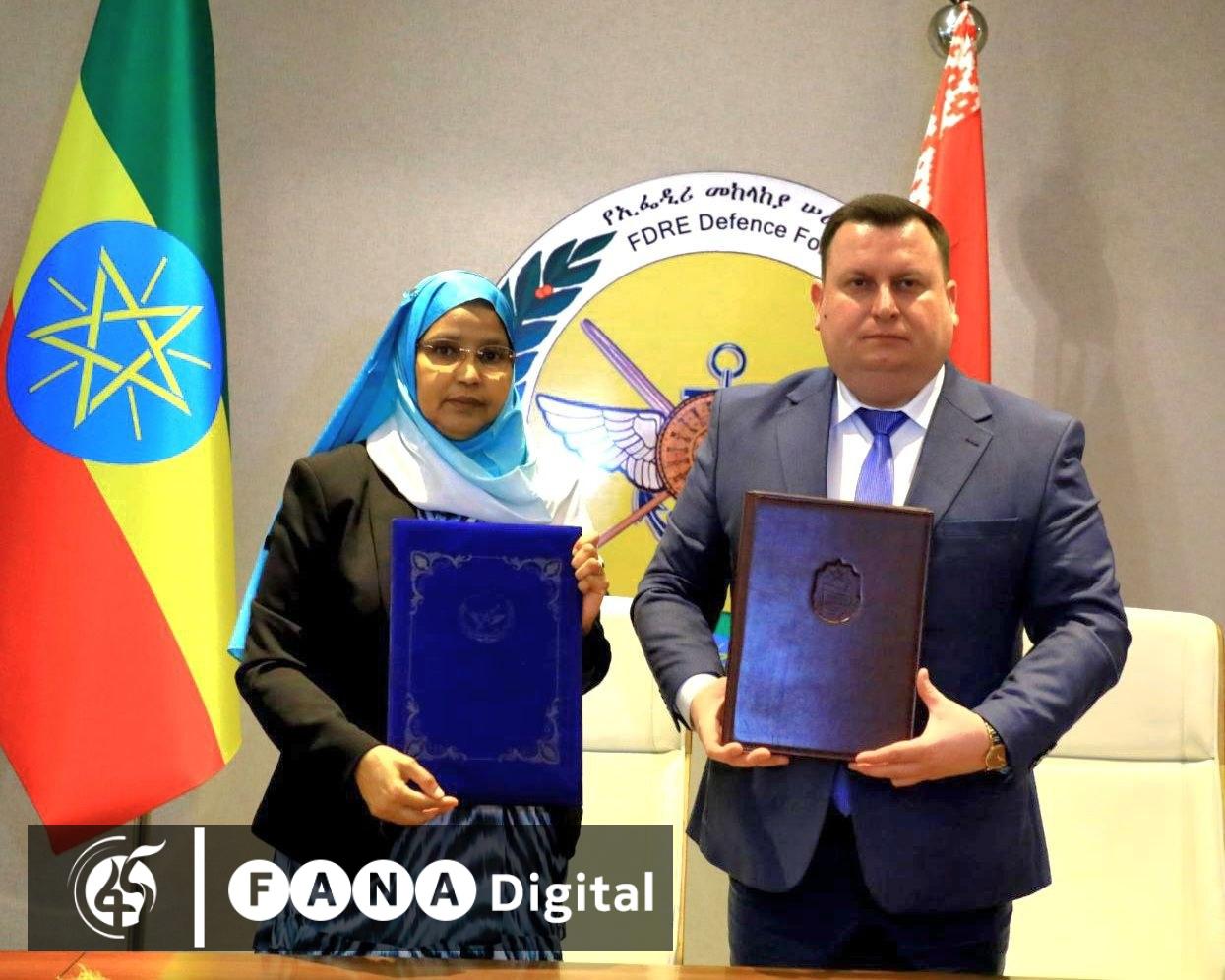 ስምምነቱን የኢፌዴሪ መከላከያ ሚኒስትር አይሻ መሀመድ (ኢ/ር) እና የቤላሩስ መከላከያ ሚኒስትር ዲምትሪ ፓንተስ ተፈራርመዋል።
