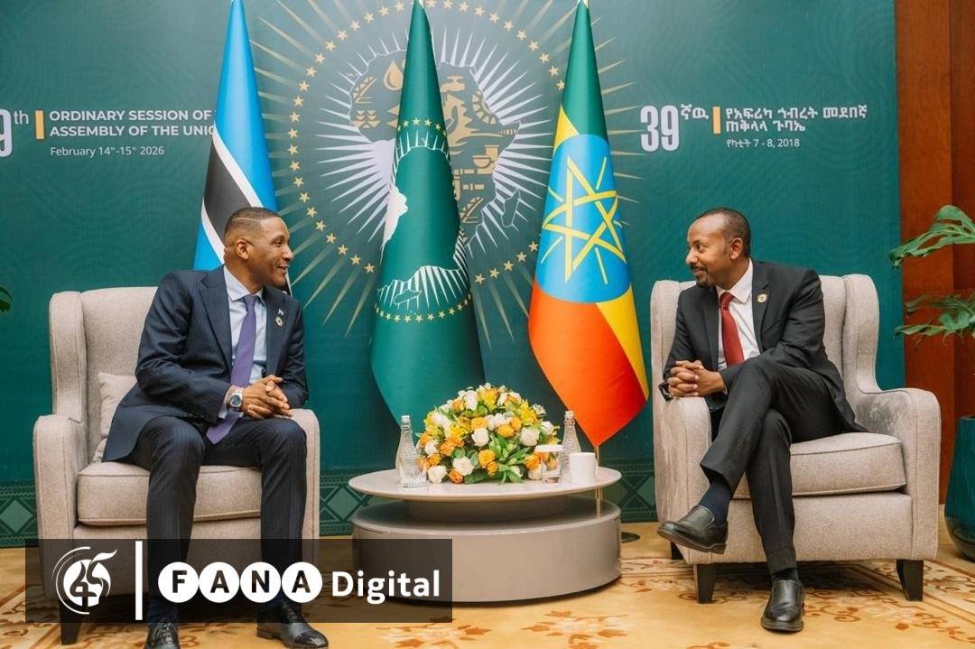 አዲስ አበባ፣ የካቲት 7፣ 2018 (ኤፍ ኤም ሲ) ጠቅላይ ሚኒስትር ዐቢይ አሕመድ (ዶ/ር) ከቦትስዋና ፕሬዚዳንት ዱማ ቦኮን ጋር ተወያይተዋል፡፡