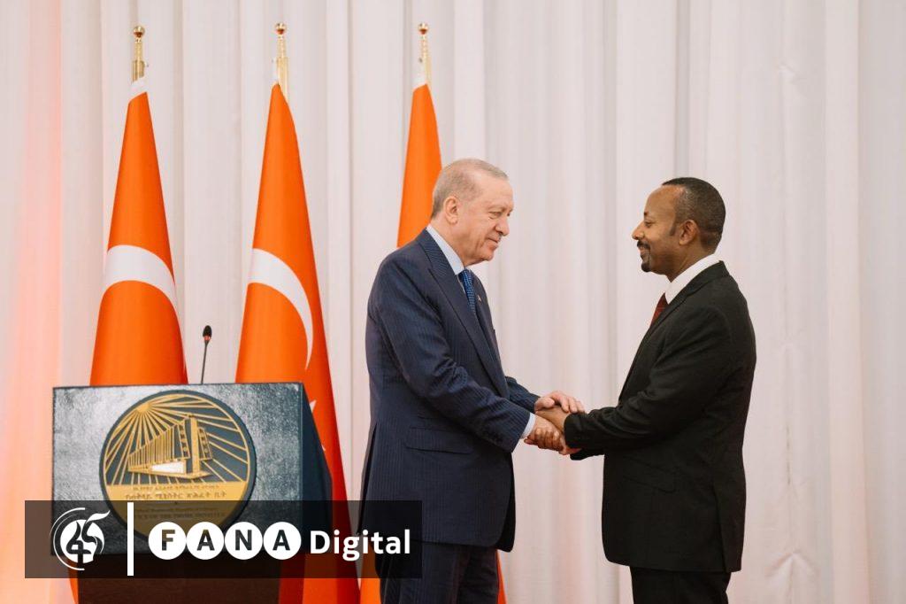 ጠቅላይ ሚኒስትር ዐቢይ አሕመድ (ዶ/ር) በኢትዮጵያ ይፋዊ ጉብኝት እያደረጉ ከሚገኙት የቱርክዬ ፕሬዚዳንት ረጀብ ጠይፕ ኤርዶዋን ጋር የጋራ መግለጫ ሰጥተዋል፡፡