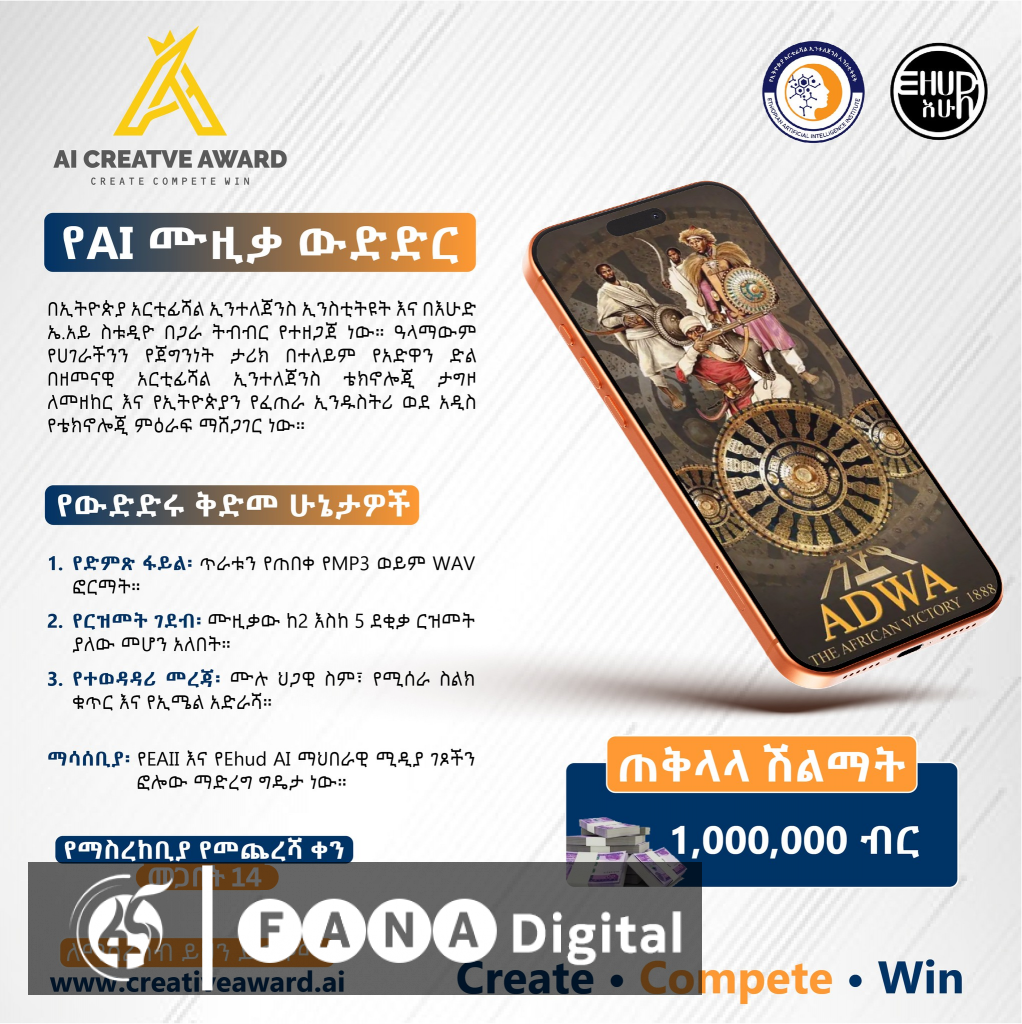 ተቋማቱ በትብብር ባዘጋጁት የሰው ሰራሽ አስተውሎት የሙዚቃ ውድድር አሸናፊ ለሚሆኑ ተወዳዳሪዎች የ1 ሚሊየን ብር ሽልማት ይበረከታል፡፡