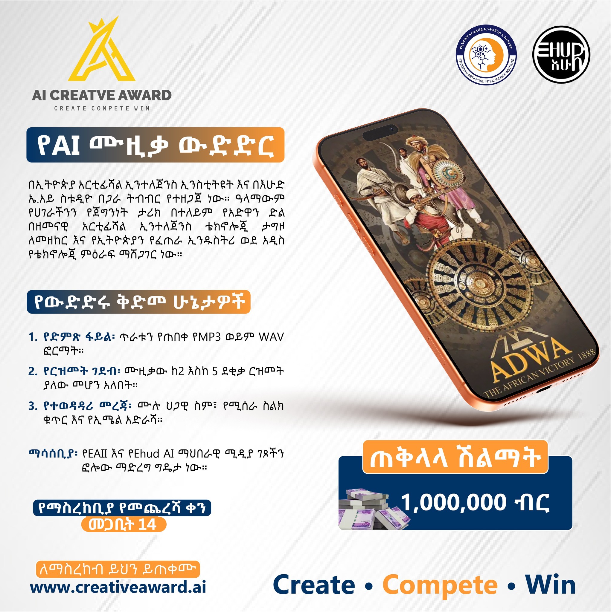 የኢንስቲትዩቱ ኮሙኒኬሽን ጉዳዮች ዳይሬክተር ተስፋዬ ዘውዴ ለፋና ዲጂታል እንዳሉት÷ የውድድሩ አሸናፊ ለሚሆኑ ተወዳዳሪዎች የ1 ሚሊየን ብር ሽልማት ተዘጋጅቷል።