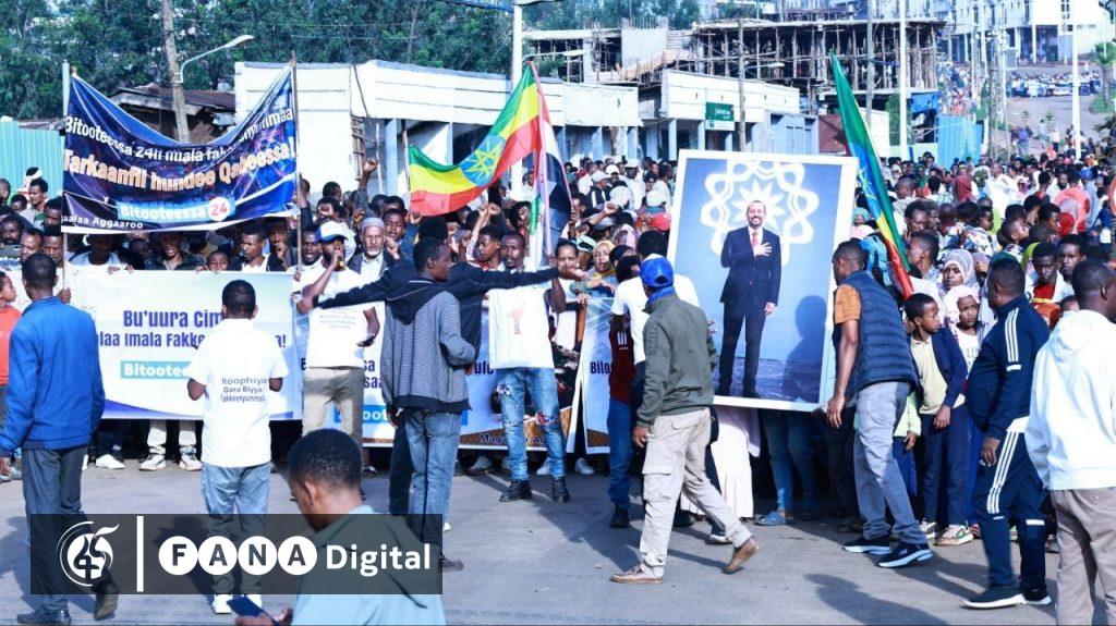 አዲስ አበባ፣ መጋቢት 24፣ 2018 (ኤፍ ኤም ሲ) ሀገራዊ ለውጡ እውን የሆነበትን 8ኛ ዓመት አስመልክቶ በኦሮሚያ ክልል አጋሮ ከተማ አስተዳደር በለውጡ ለተገኘው ድልና ስኬት እውቅና የሚሰጥ ታላቅ ህዝባዊ የድጋፍ ሰልፍ ተካሂዷል።