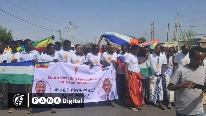 አዲስ አበባ፣ መጋቢት 27፣ 2018 (ኤፍ ኤም ሲ) ሀገራዊ ለውጡ እውን የሆነበትን 8ኛ ዓመት አስመልክቶ በአፋር ክልል ኤሊዳአር ወረዳ ሀዩ ከተማ በለውጡ ለተገኘው ድልና ስኬት እውቅና የሚሰጥ ታላቅ ህዝባዊ የድጋፍ ሰልፍ ተካሂዷል።