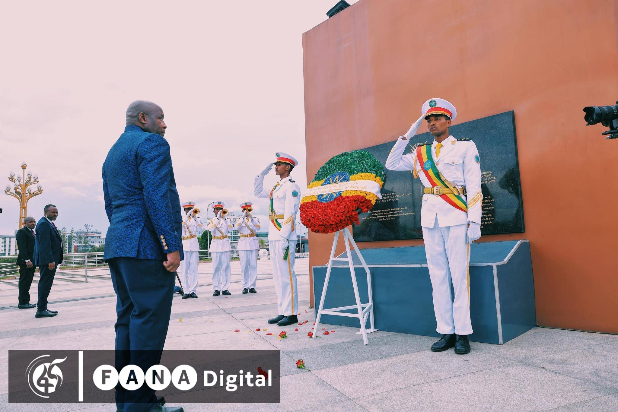 የቡሩንዲ ፕሬዚዳንት ኢቫሪስት ንዴሺሚዬን በዓድዋ ድል መታሰቢያ የአበባ ጉንጉን አኖሩ