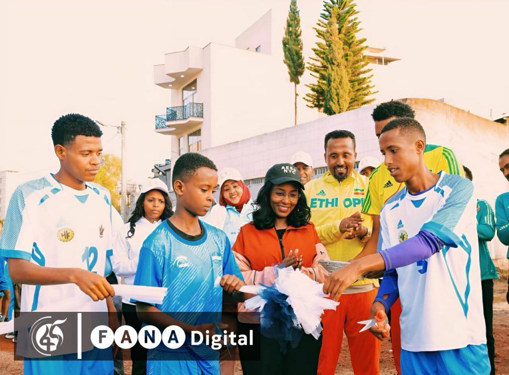 ከንቲባዋ በንፋስ ስልክ ላፍቶ ክፍለ ከተማ ተገንብቶ የተጠናቀቀውን (የ46 ሜዳ) የስፖርት ሜዳ መርቀው ለአገልግሎት ክፍት አድርገዋል።