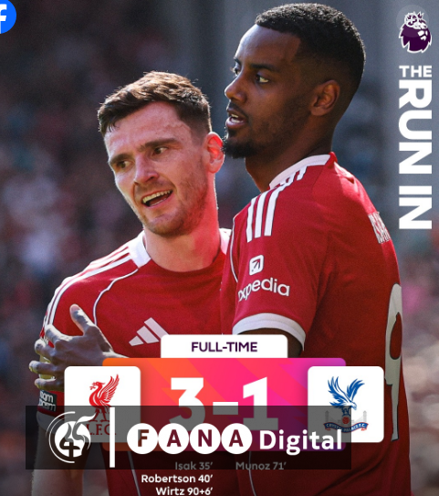አዲስ አበባ፣ ሚያዚያ 17፣ 2018 (ኤፍ ኤም ሲ) በ34ኛ ሳምንት የእንግሊዝ ፕሪሚየር ሊግ መርሐ ግብር በሜዳው አንፊልድ ክሪስታል ፓላስን ያስተናገደው ሊቨርፑል 3 ለ 1 አሸንፏል።