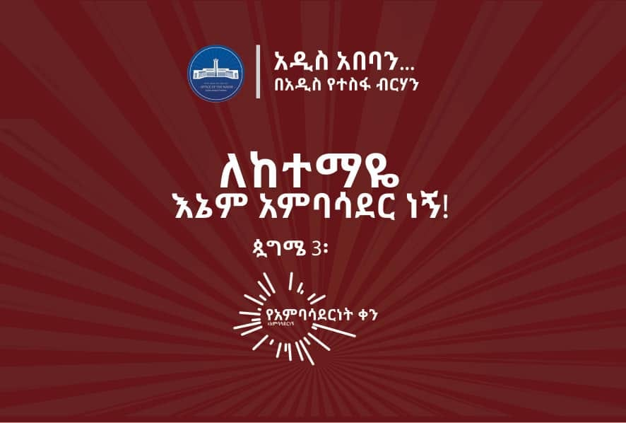 አዲስ አበባ ፣ጳጉሜን 3 ፣2012 (ኤፍ.ቢ.ሲ) ጳጉሜን 3 የአምባሳደርነት ቀን “እኔም የከተማዬ አምባሳደር ነኝ “በሚል መሪ ሃሳብ በተለያየ መርሃ ግብር እየታሰበ ነው።