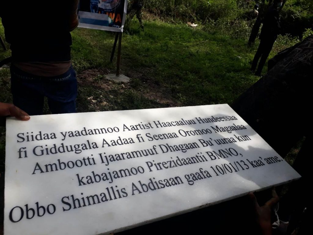 አዲስ አበባ፣ መስከረም 10፣ 2013 (ኤፍ.ቢ.ሲ)የኦሮሞ ባህልና ታሪክ ማእከልና የአርቲስት ሃጫሉ ሁንዴሳ መታሰቢያ ሃውልት የመሰረት ድንጋይ በአምቦ ከተማ ተቀመጠ፡፡