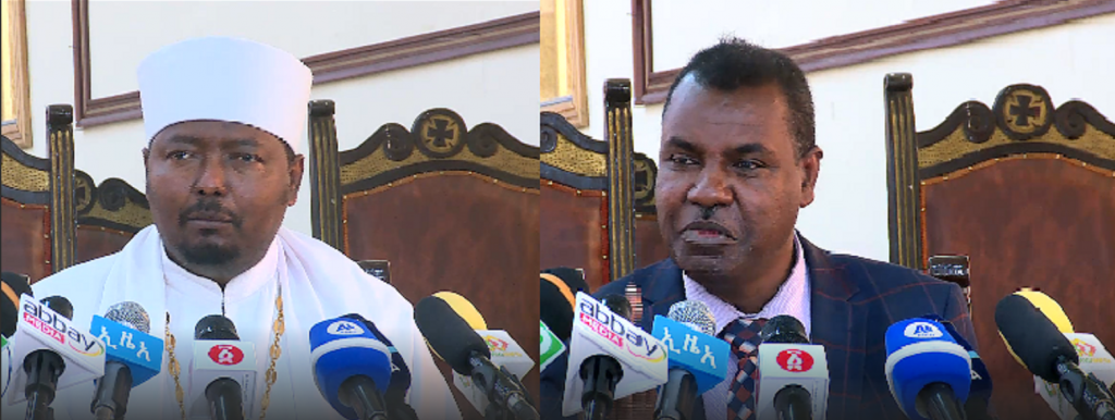 የማኅበሩ ሰብሳቢ ላዕከሠላም ባያብል ሙላቴና የኦሮሚያ ቤተ ክህነት ለመመስረት ተቋቁሞ የነበረው ኮሚቴ ሰብሳቢ ቀሲስ በላይ መኮንን በጋራ መግለጫ ሰጥተዋል።