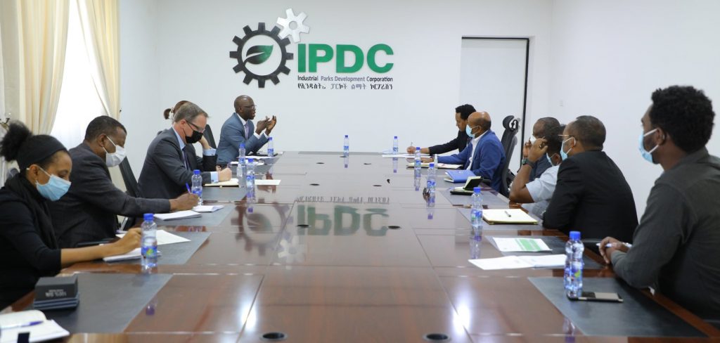 የኢንዱስትሪ ፓርኮች ልማት ኮርፖሬሽን ዋና ስራ አስፈጻሚ አቶ ሳንዶካን ደበበ በዓለም ባንክ ኢትዮጵያን ጨምሮ የምስራቅ አፍሪካ ዳይሬክተር ኦስማን ዳይን ከተማራውን ልዑክ ጋር በተለያዩ ጉዳዮች ላይ ተወያይተዋል።