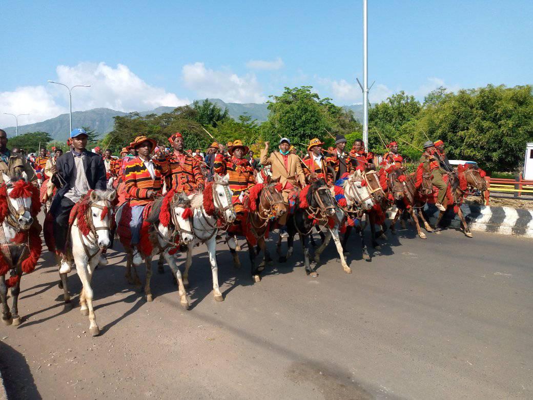 በተያያዘ የአርባምንጭ ከተማ እና አካባቢው ተሳታፊዎች በፈረሰኛ ታጅበው አርባምንጭ ሁለገብ ስታዲየም ሰልፍ አካሂደዋል።