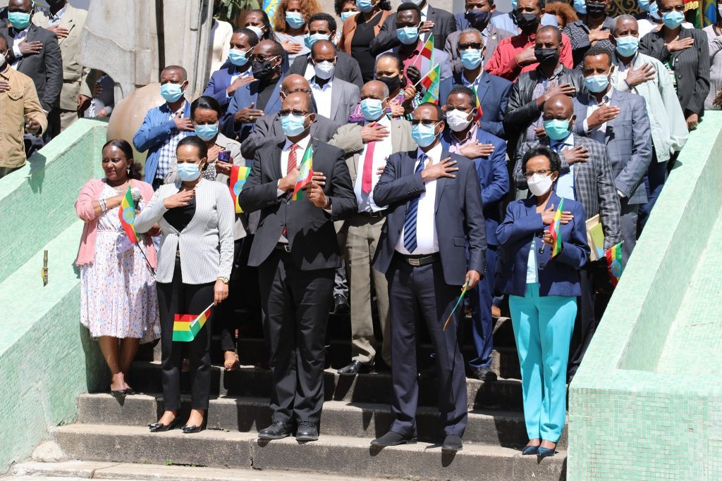 በምክር ቤቱ ቅጥር ግቢ ከጠዋቱ 5:30 ላይ በነበረው ስነ-ስርዓት የኢ.ፌ.ዲ.ሪ የህዝብ ተወካዮች ምክር ቤት አፈ ጉባኤ አቶ ታገሰ ጫፎ እና የፌዴሬሽን ምክር ቤት አፈ ጉባኤ አደም ፋራህ እንዲሁም የሁለቱም ምክር ቤቶች አባላትና ሰራተኞች የተገኙተገኝተዋል።
