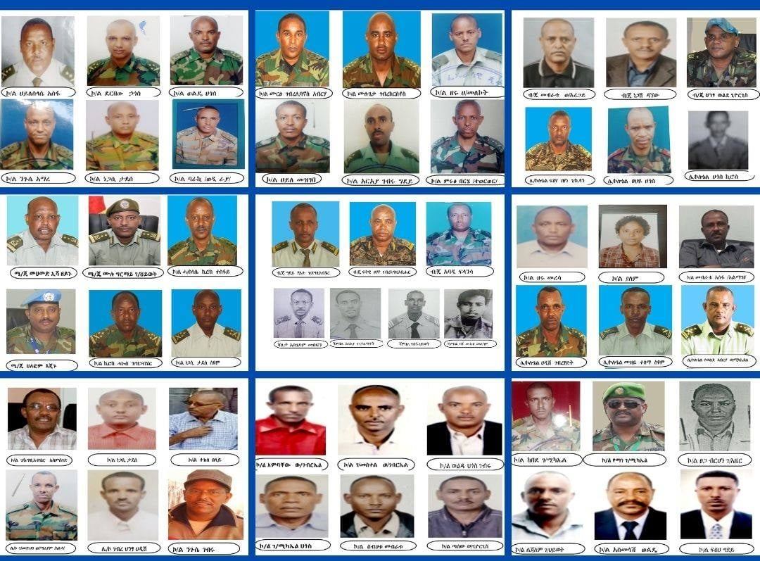 የሀገር ህልውናን አደጋ ላይ በመጣልና ህገ-መንግስቱንና ህገ መንግስታዊ ስርዓቱን በሀይል በመናድ ወንጀል ውስጥ በመሳተፍ የሚፈለጉትና የፍርድ ቤት የመያዣ ትዕዛዝ የወጣባቸው በስራ ላይ ያሉና በጡረታ የተሰናበቱ የሀገር መከላከያ ሰራዊት ጀነራል መኮንኖች፣ ከፍተኛ ወታደራዊ መኮንኖችና የበታች ሹማምንቶች ስም