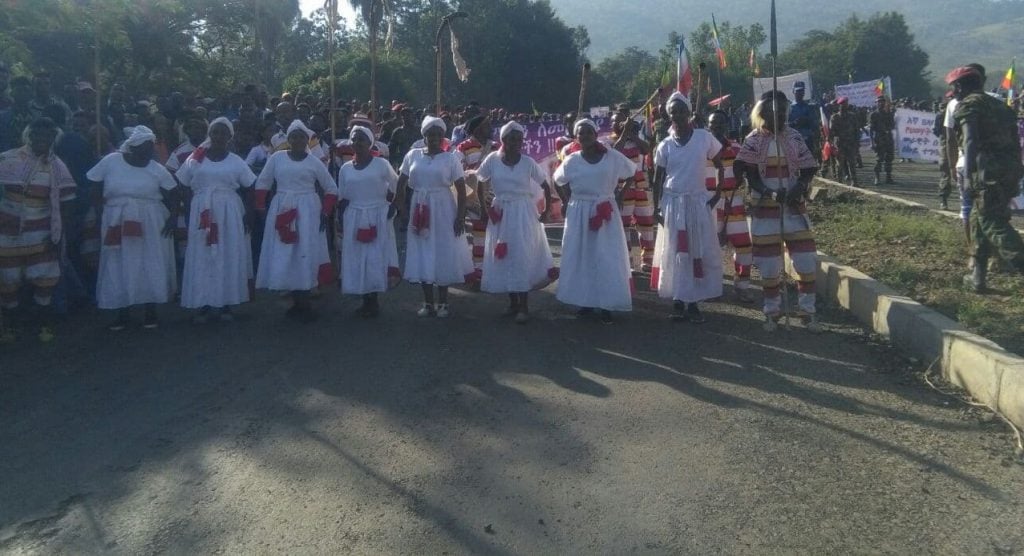 በሰልፉ ከዳውሮ ዞን አስር ወረዳዎችና ከተርጫ ከተማ የተውጣጡ ነዋሪዎች በመሳተፍ ላይ ይገኛሉ።