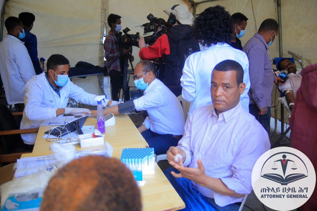 የኢፌዴሪ ጠቅላይ ዐቃቤ ሕግ አመራሮች እና ሰራተኞች “ደሜን ለህግ መከበር ህይወታቸውን ለሰጡት ለመከላከያ ሰራዊት አባላት” በሚል መሪ ቃል ለሀገር መከላከያ ሰራዊት የደም ልገሳ እና የ3 ሚሊየን ብር ገንዘብ ድጋፍ አድርገዋል።