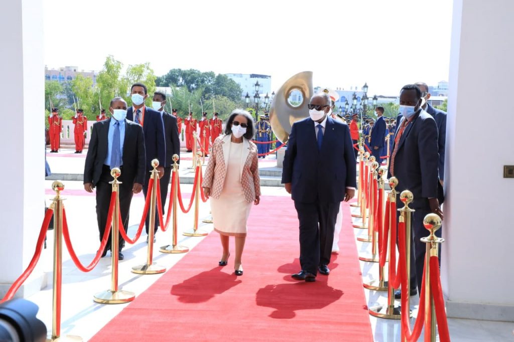 በውይይታቸውም ፕሬዚዳንት ሳህለወርቅ ዘውዴ ጅቡቲ ከሁሉም ሀገራት ቀድማ በኢትዮጵያ እየተካሄደ ያለውን የሕግ ማስከበር ዘመቻ በተመለከተ ለሰጠችው በጎ ምላሽ ምስጋና አቅርበዋል።