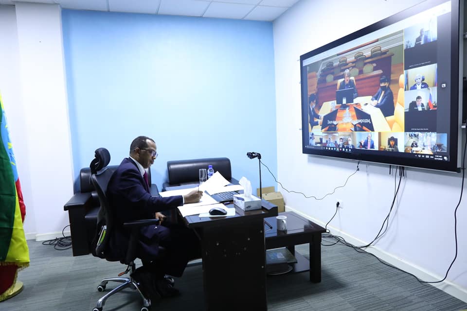 የትምህርት ሚኒስትሩ ዶክተር ጌታሁን መኩሪያ እና በሩሲያ ፌደሬሽን የተፈጥሮ ሃብትና የአካባቢ ጉዳዮች ምክትል ሚኒስትርና የፌደራል የማዕድን ሃብት ኤጀንሲ ሃላፊ ኤቫግኒ ኪሰልቭ በቪዲዮ ኮንፈረንስ ተወያይተዋል።
