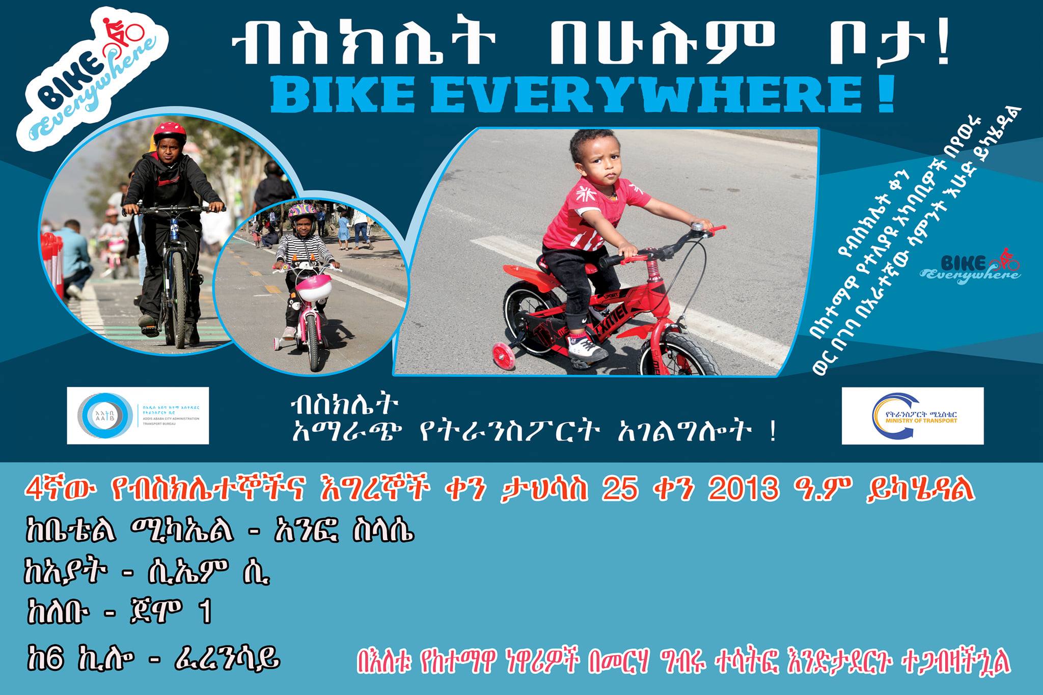 በአዲስ አበባ 4ኛው የብስክሌተኞችና እግረኞች ቀን በመጪው እሁድ ይካሄዳል
