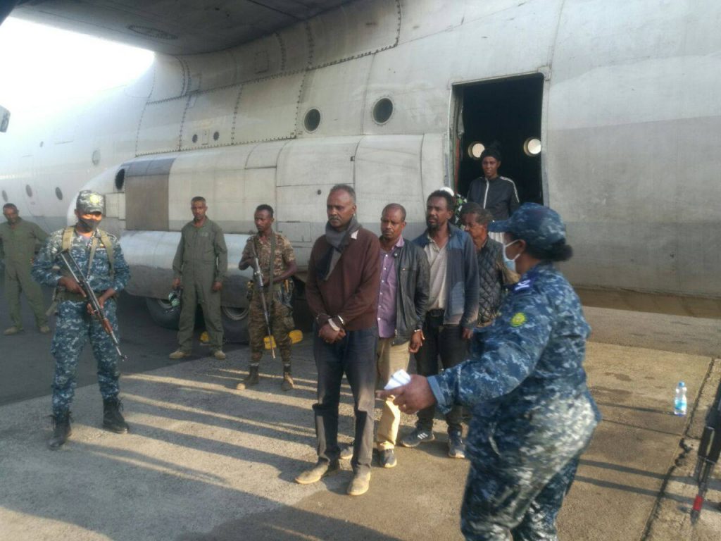 አዲስ አበባ ፣ ጥር 3 ፣ 2013 (ኤፍ ቢ ሲ) የቀድሞው የትግራይ ክልል ፕሬዚዳንት አባይ ወልዱና ምክትል ፕሬዚዳንትን ዶክተር አብርሃም ተከስተን ጨምሮ ሃገር ለመበታተን ሲሰሩ ቁጥጥር ስር የዋሉ የሕወሃት ጁንታው አመራሮች አዲስ አበባ ገቡ።