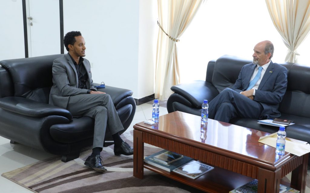 አዲስ አበባ ፣ ጥር 13 ፣ 2013 (ኤፍ ቢ ሲ) የኢንዱስትሪ ፓርኮች ልማት ኮርፖሬሽን ዋና ስራ አስፈፃሚ አቶ ሳንዶካን ደበበ በኢትዮጵያ እና ብሩንዲ የእስራኤል አምባሳደር ራፋኤል ሞራቭ ጋር ሁለቱ ሀገራት በኢንፎርሜሽን ኮሙዩኒኬሽን ቴክኖሎጅ እና በፋርማሲዩቲካል ዘርፍ አብሮ መስራት በሚያስችላቸው ጉዳዮች ላይ ተወያይተዋል፡፡