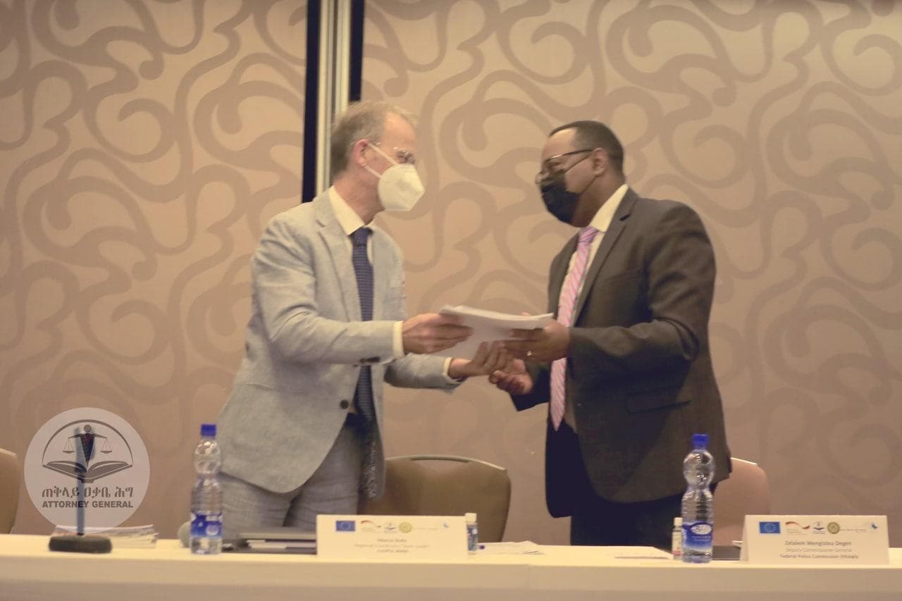 አዲስ አበባ ፣ ጥር 14 ፣ 2013 (ኤፍ ቢ ሲ) በህገ ወጥ መንገድ ድንበር የማሻገር ወንጀሎችን ለመመርመርና ለማስቀጣት የሚያስችል የአሰራር ስርዓት ሰነድ ተዘጋጅቶ በሲቪ ፖል የምስራቅ አፍሪካ፣ ጠቅላይ ዐቃቤ ህግ እንዲሁም በፌደራል ፖሊስ ኮሚሽን መካከል ርክክብ መደረጉን ጠቅላይ ዐቃቤ ህግ አስታወቀ፡፡