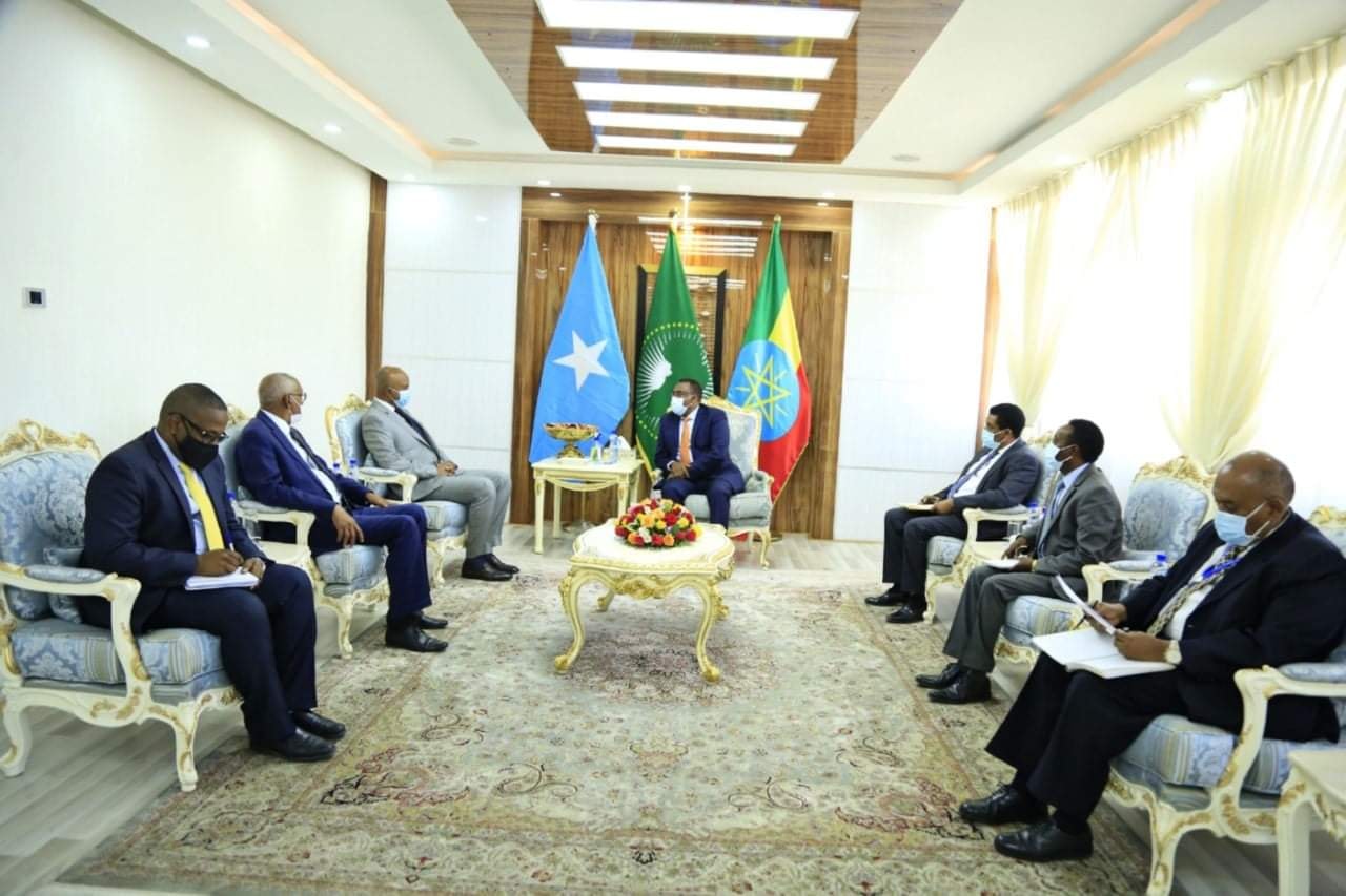 ም/ጠ/ሚ እና ውጭ ጉዳይ ሚኒስትር ደመቀ መኮንን የሶማሊያ ፌዴራል መንግሥት የውጭ ጉዳይና ዓለም አቀፍ ትብብር ሚኒስትር ሞሐመድ አብዲራዛቅን ተቀብለው አነጋገሩ